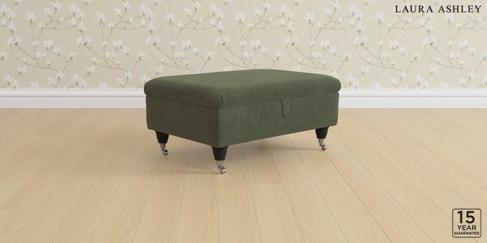 6.12.1 Buy Beverley by Laura Ashley Storage Footstool Lundar Chenille Ivy Green Low Chrome Castor - Black from the Next UK online shop Click here to use our accessible website