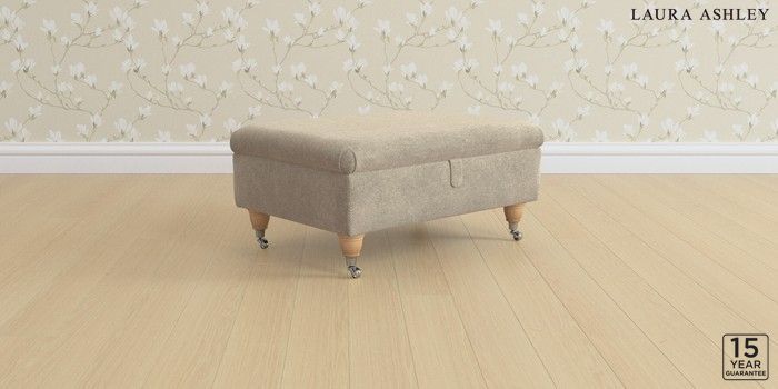 6.12.1 Buy Beverley by Laura Ashley Storage Footstool Lundar Chenille Truffle Natural Low Chrome Castor - Light Oak from the Next UK online shop Click here to use our accessible website