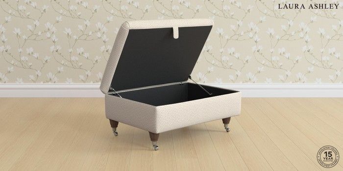 7.2.6 Buy Beverley by Laura Ashley Storage Footstool Melbreak Geo Light Natural Low Chrome Castor - Chestnut from the Next UK online shop Click here to use our accessible website