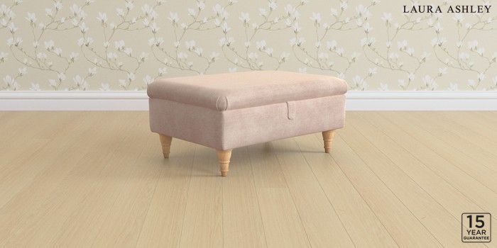 6.12.1 Buy Beverley by Laura Ashley Storage Footstool Orla Chalk Pink Low Turned - Light Oak from the Next UK online shop Click here to use our accessible website
