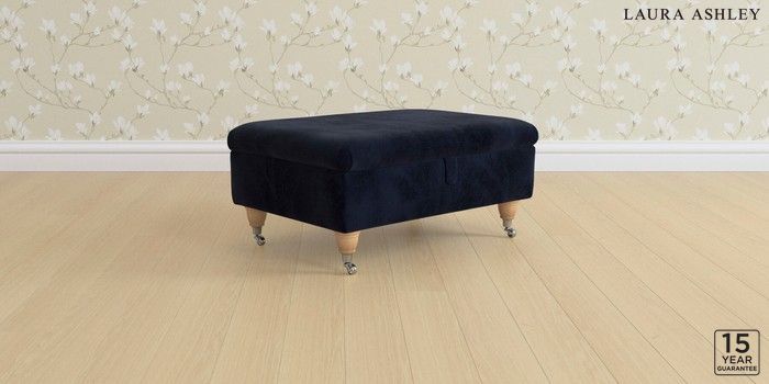 6.12.1 Buy Beverley by Laura Ashley Storage Footstool Orla Midnight Navy Low Chrome Castor - Light Oak from the Next UK online shop Click here to use our accessible website