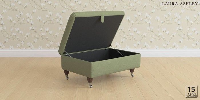 6.12.1 Buy Beverley by Laura Ashley Storage Footstool Peyton Hedgerow Green Low Chrome Castor - Chestnut from the Next UK online shop Click here to use our accessible website