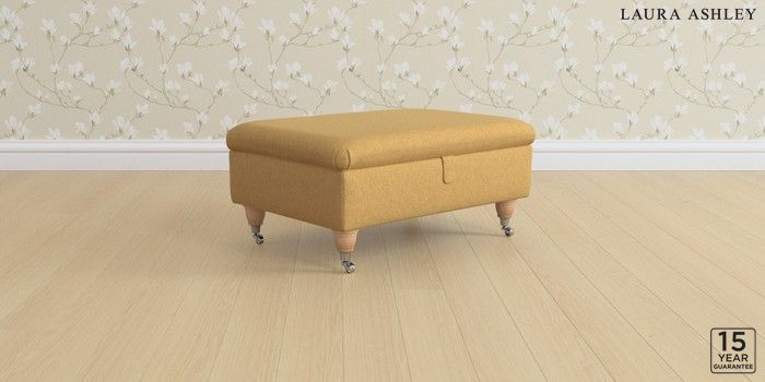 6.12.1 Buy Beverley by Laura Ashley Storage Footstool Peyton Ochre Yellow Low Chrome Castor - Light Oak from the Next UK online shop Click here to use our accessible website