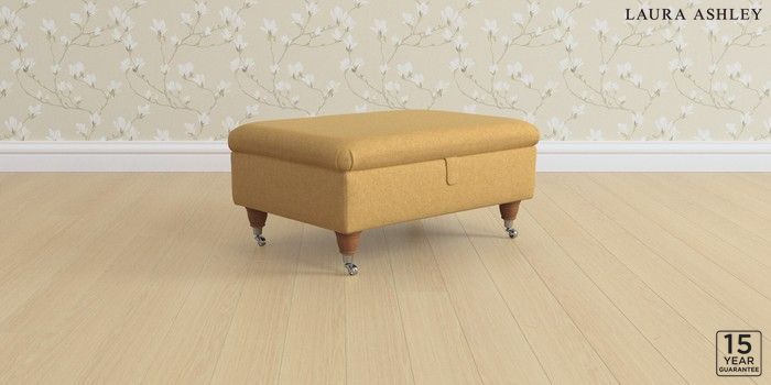 6.12.1 Buy Beverley by Laura Ashley Storage Footstool Peyton Ochre Yellow Low Chrome Castor - Teak from the Next UK online shop Click here to use our accessible website