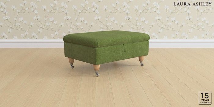 6.12.1 Buy Beverley by Laura Ashley Storage Footstool Tichwell Olive Green Low Chrome Castor - Light Oak from the Next UK online shop Click here to use our accessible website