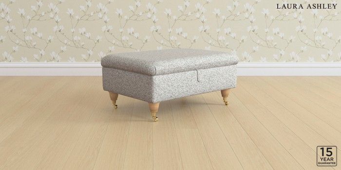 6.12.13 Buy Beverley by Laura Ashley Storage Footstool Tichwell Steel Grey Low Brass Castor - Light Oak from the Next UK online shop Click here to use our accessible website