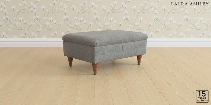 6.12.1 Buy Beverley by Laura Ashley Storage Footstool Wooton Dark Steel Grey Low Turned - Teak from the Next UK online shop Click here to use our accessible website
