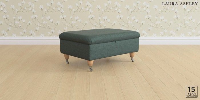 6.12.1 Buy Beverley by Laura Ashley Storage Footstool Wooton Forest Green Low Chrome Castor - Light Oak from the Next UK online shop Click here to use our accessible website