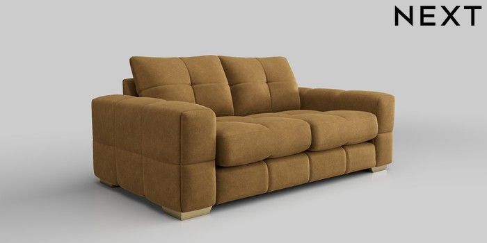 6.12.1 Buy Brooke Deep Sit 3 Seater Small Sofa Luxe Chenille Honey Yellow Large Square Angle - Brushed Brass from the Next UK online shop Click here to use our accessible website