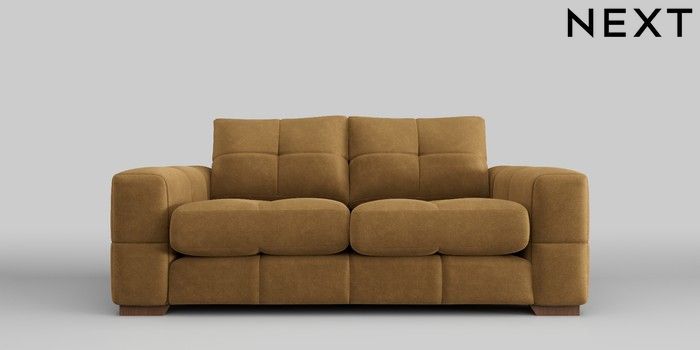 7.0.3 Buy Brooke Deep Sit 3 Seater Small Sofa Luxe Chenille Honey Yellow Large Square Angle - Mid from the Next UK online shop Click here to use our accessible website
