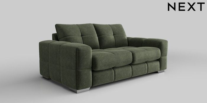 6.12.1 Buy Brooke Deep Sit 3 Seater Small Sofa Luxe Chenille Mid Green Large Square Angle - Chrome Metal from the Next UK online shop Click here to use our accessible website