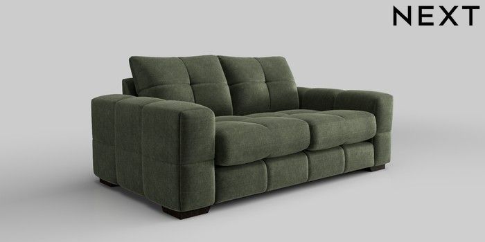 6.12.1 Buy Brooke Deep Sit 3 Seater Small Sofa Luxe Chenille Mid Green Large Square Angle - Dark from the Next UK online shop Click here to use our accessible website