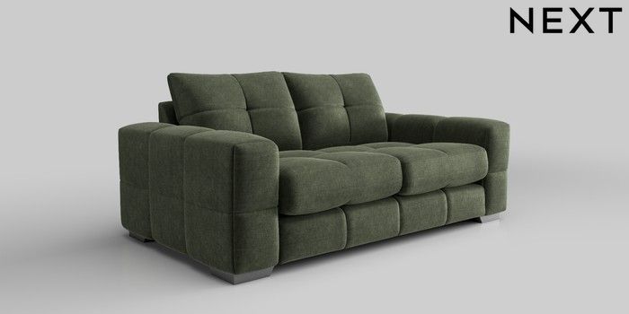 6.12.1 Buy Brooke Deep Sit 3 Seater Small Sofa Luxe Chenille Mid Green Large Square Angle - Gunmetal from the Next UK online shop Click here to use our accessible website