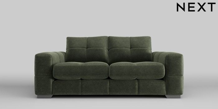 7.0.3 Buy Brooke Deep Sit 3 Seater Small Sofa Luxe Chenille Mid Green Large Square Angle - Gunmetal from the Next UK online shop Click here to use our accessible website