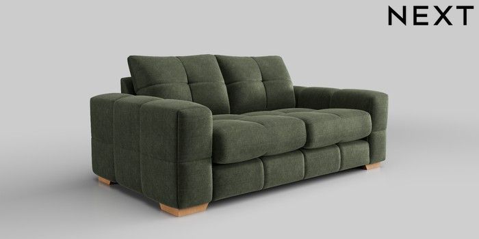 6.12.1 Buy Brooke Deep Sit 3 Seater Small Sofa Luxe Chenille Mid Green Large Square Angle - Light from the Next UK online shop Click here to use our accessible website