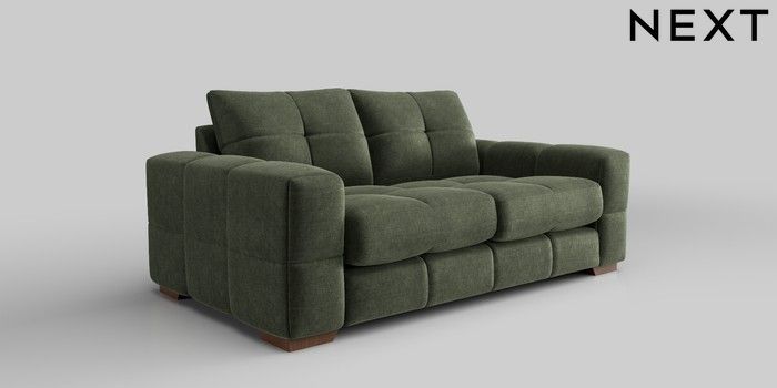 6.12.1 Buy Brooke Deep Sit 3 Seater Small Sofa Luxe Chenille Mid Green Large Square Angle - Mid from the Next UK online shop Click here to use our accessible website