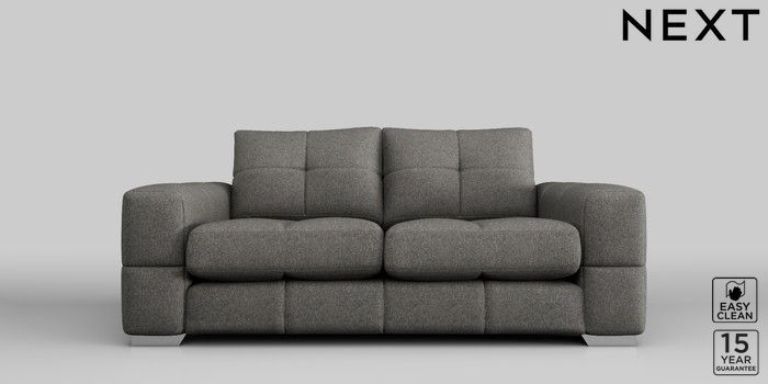 6.11.4 Buy Brooke Deep Sit 3 Seater Small Sofa Tweedy Blend Easy Clean Dark Grey Large Square Angle - Chrome Metal from the Next UK online shop Click here to use our accessible website