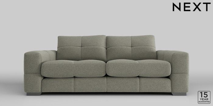 6.12.1 Buy Brooke Deep Sit 3 Seater Sofa Chunky Marl Light Olive Green Large Square Angle - Gunmetal from the Next UK online shop Click here to use our accessible website