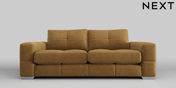 7.0.3 Buy Brooke Deep Sit 3 Seater Sofa Luxe Chenille Honey Yellow Large Square Angle - Chrome Metal from the Next UK online shop Click here to use our accessible website