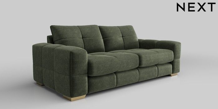 6.12.1 Buy Brooke Deep Sit 3 Seater Sofa Luxe Chenille Mid Green Large Square Angle - Brushed Brass from the Next UK online shop Click here to use our accessible website