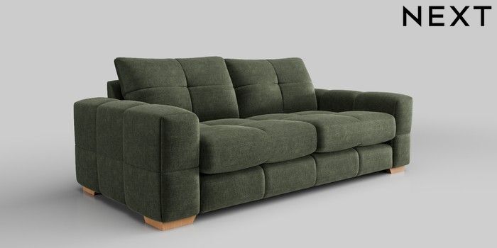 6.12.1 Buy Brooke Deep Sit 3 Seater Sofa Luxe Chenille Mid Green Large Square Angle - Light from the Next UK online shop Click here to use our accessible website