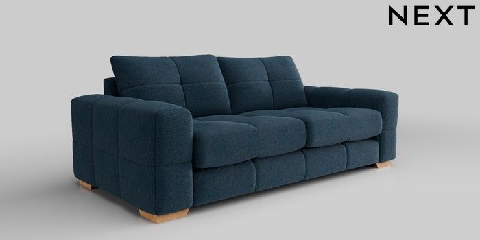 6.12.1 Buy Brooke Deep Sit 3 Seater Sofa Ripple Chenille Dark Blue Large Square Angle - Light from the Next UK online shop Click here to use our accessible website
