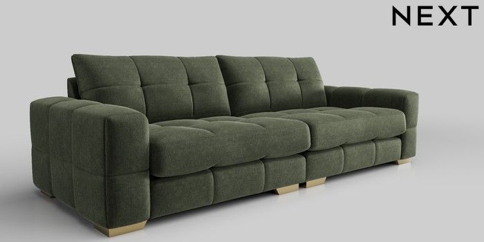 6.12.1 Buy Brooke Deep Sit 4 Seater Large Sofa Luxe Chenille Mid Green Large Square Angle - Brushed Brass from the Next UK online shop Click here to use our accessible website