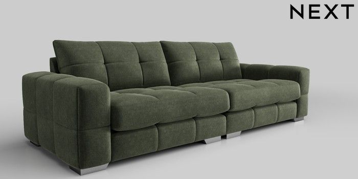 6.12.1 Buy Brooke Deep Sit 4 Seater Large Sofa Luxe Chenille Mid Green Large Square Angle - Chrome Metal from the Next UK online shop Click here to use our accessible website