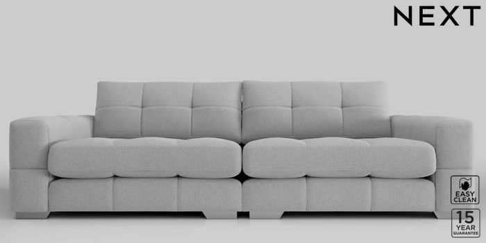 6.11.4 Buy Brooke Deep Sit 4 Seater Large Sofa Tweedy Blend Easy Clean Light Silver Grey Large Square Angle - Chrome Metal from the Next UK online shop Click here to use our accessible website
