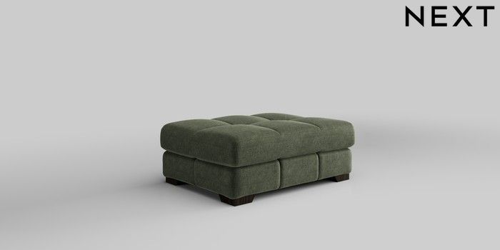 6.12.1 Buy Brooke Deep Sit Footstool Luxe Chenille Mid Green Square Angle - Dark from the Next UK online shop Click here to use our accessible website