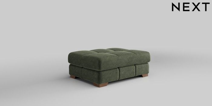 6.12.1 Buy Brooke Deep Sit Footstool Luxe Chenille Mid Green Square Angle - Mid from the Next UK online shop Click here to use our accessible website