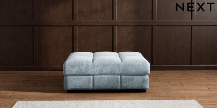 7.2.6 Buy Brooke Deep Sit Footstool Plush Chenille Light Blue Square Angle - Dark from the Next UK online shop Click here to use our accessible website