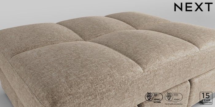6.12.1 Buy Brooke Deep Sit Footstool Plush Chenille Mid Natural Square Angle - Chrome Metal from the Next UK online shop Click here to use our accessible website