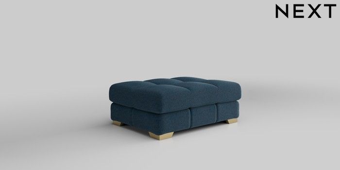 6.12.1 Buy Brooke Deep Sit Footstool Ripple Chenille Dark Blue Square Angle - Brushed Brass from the Next UK online shop Click here to use our accessible website