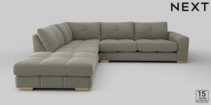 6.12.1 Buy Brooke Deep Sit Large Open End Corner Chaise - Left Hand Chunky Marl Light Olive Green Large Square Angle - Brushed Brass from the Next UK online shop Click here to use our accessible website