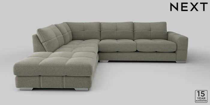 6.12.1 Buy Brooke Deep Sit Large Open End Corner Chaise - Left Hand Chunky Marl Light Olive Green Large Square Angle - Chrome Metal from the Next UK online shop Click here to use our accessible website