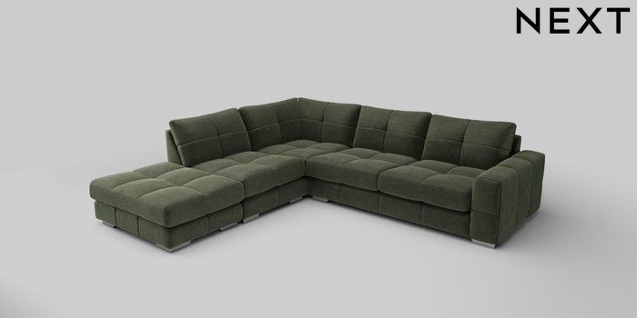 6.12.1 Buy Brooke Deep Sit Large Open End Corner Chaise - Left Hand Luxe Chenille Mid Green Large Square Angle - Chrome Metal from the Next UK online shop Click here to use our accessible website