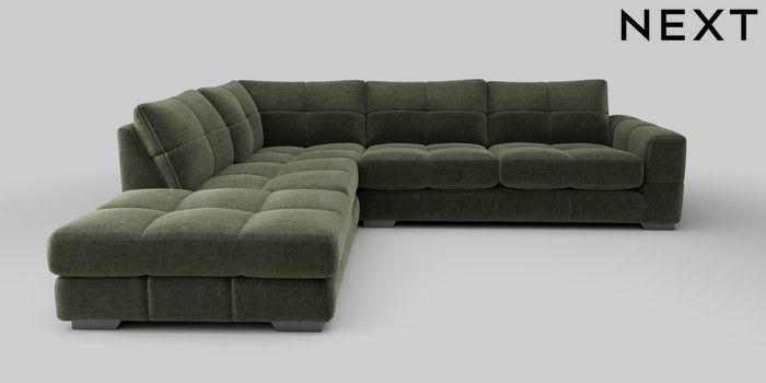 7.0.3 Buy Brooke Deep Sit Large Open End Corner Chaise - Left Hand Luxe Chenille Mid Green Large Square Angle - Gunmetal from the Next UK online shop Click here to use our accessible website