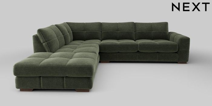 7.0.3 Buy Brooke Deep Sit Large Open End Corner Chaise - Left Hand Luxe Chenille Mid Green Large Square Angle - Mid from the Next UK online shop Click here to use our accessible website