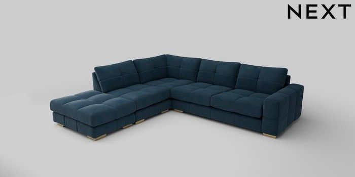 6.12.1 Buy Brooke Deep Sit Large Open End Corner Chaise - Left Hand Ripple Chenille Dark Blue Large Square Angle - Brushed Brass from the Next UK online shop Click here to use our accessible website