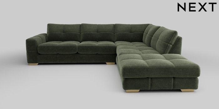 7.0.3 Buy Brooke Deep Sit Large Open End Corner Chaise - Right Hand Luxe Chenille Mid Green Large Square Angle - Brushed Brass from the Next UK online shop Click here to use our accessible website