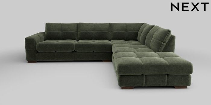 7.0.3 Buy Brooke Deep Sit Large Open End Corner Chaise - Right Hand Luxe Chenille Mid Green Large Square Angle - Mid from the Next UK online shop Click here to use our accessible website
