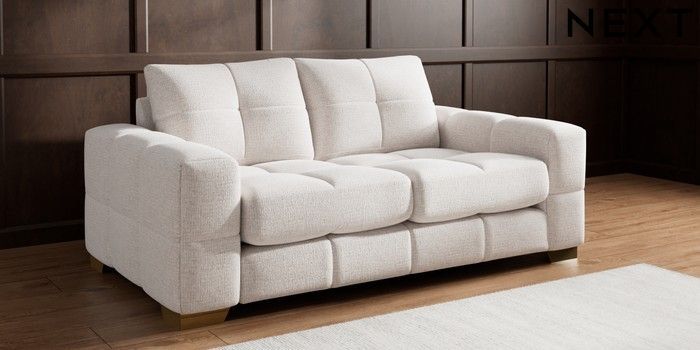 7.2.10 Buy Brooke Deep Sit 3 Seater Small Sofa Multi Weave Oyster Large Square Angle - Brushed Brass from the Next UK online shop Click here to use our accessible website