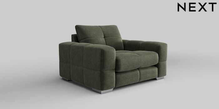 6.12.1 Buy Brooke Deep Sit Snuggle Luxe Chenille Mid Green Large Square Angle - Chrome Metal from the Next UK online shop Click here to use our accessible website