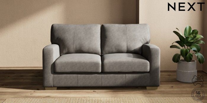 6.12.1 Buy Brooklyn Leather 2 Seater Sofa Antiqued Leather Grey Slim Block - Light from the Next UK online shop Click here to use our accessible website