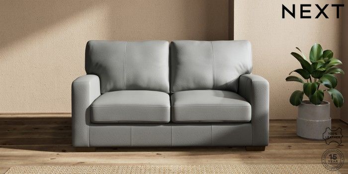 6.12.1 Buy Brooklyn Leather 2 Seater Sofa Columbia French Grey Slim Block - Mid from the Next UK online shop Click here to use our accessible website