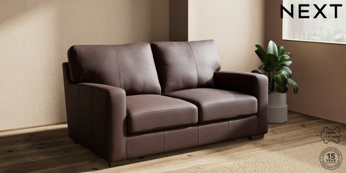 7.0.3 Buy Brooklyn Leather 2 Seater Sofa Rustic Leather Dark Brown Slim Block - Mid from the Next UK online shop Click here to use our accessible website