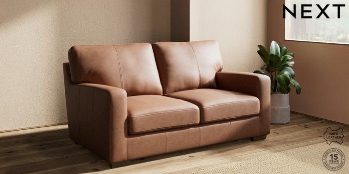 7.0.3 Buy Brooklyn Leather 2 Seater Sofa Rustic Leather Light Brown Slim Block - Mid from the Next UK online shop Click here to use our accessible website