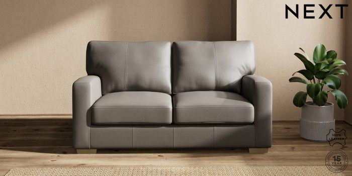 6.12.1 Buy Brooklyn Leather 2 Seater Sofa Turin Leather French Grey Slim Block - Light from the Next UK online shop Click here to use our accessible website