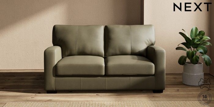 6.12.1 Buy Brooklyn Leather 2 Seater Sofa Turin Leather Moss Green Slim Block - Dark from the Next UK online shop Click here to use our accessible website